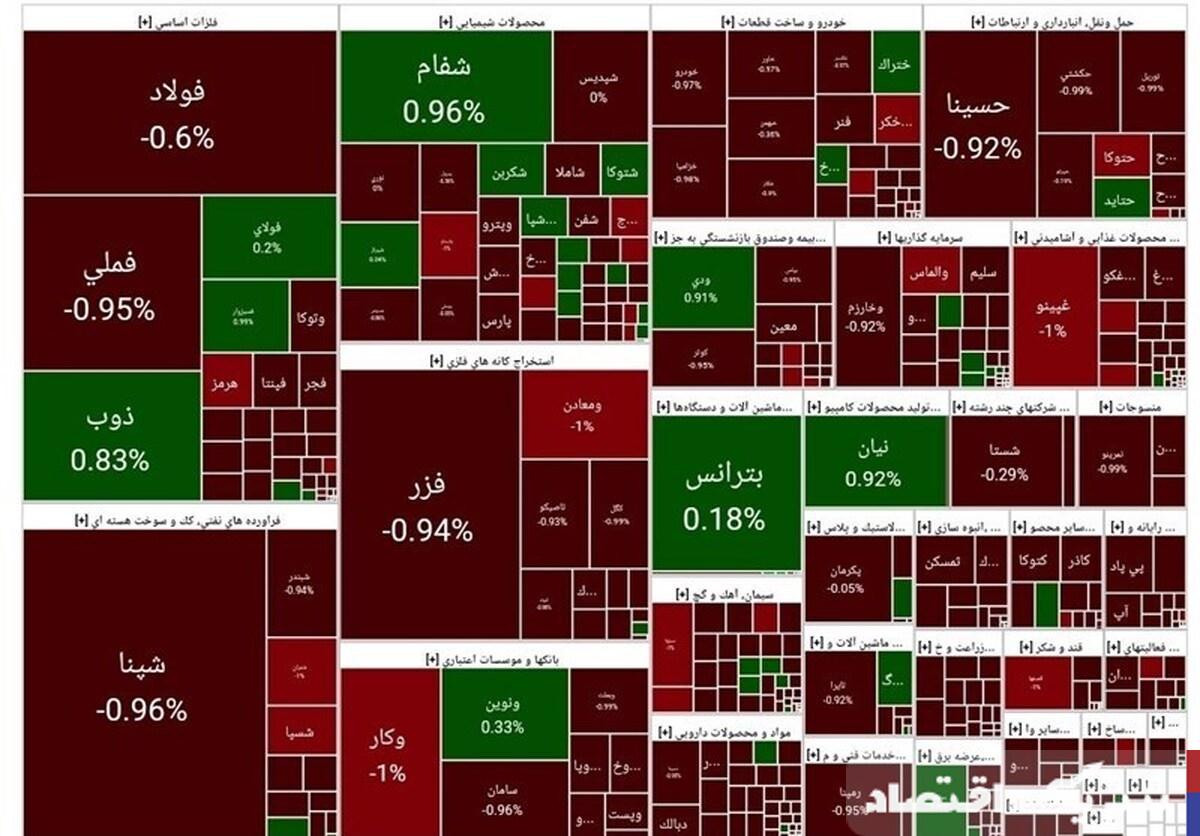در میان نمادهای بزرگ، «فولاد»، «فملی»، «میدکو»، «فارس» و «نوری» بیشترین اثر منفی را بر شاخص کل داشتند. در مقابل، «خودرو» و «خساپا» از معدود نمادهایی بودند که اندکی اثر مثبت بر نماگر بازار گذاشتند.