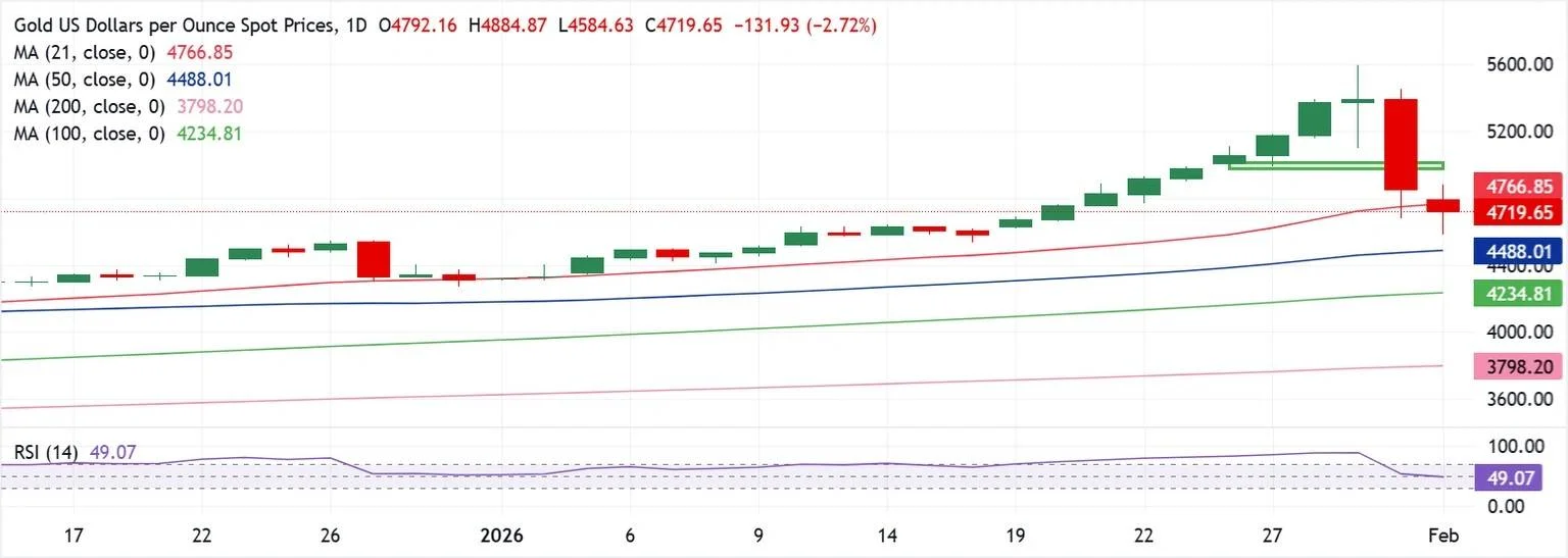 قیمت طلا (XAU/USD) پس از آنکه در معاملات ابتدایی روز دوشنبه در بازار آسیا تا زیر سطح 4600 دلار افت کرده بود، روند اصلاحی خود را متوقف کرد و بار دیگر توانست به بالای محدوده 4700 دلار بازگردد. با این حال، این بهبود نسبی هنوز برای تغییر جهت کلی بازار کافی نبوده و طلا همچنان تحت فشار فروش قرار دارد.